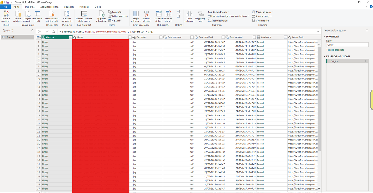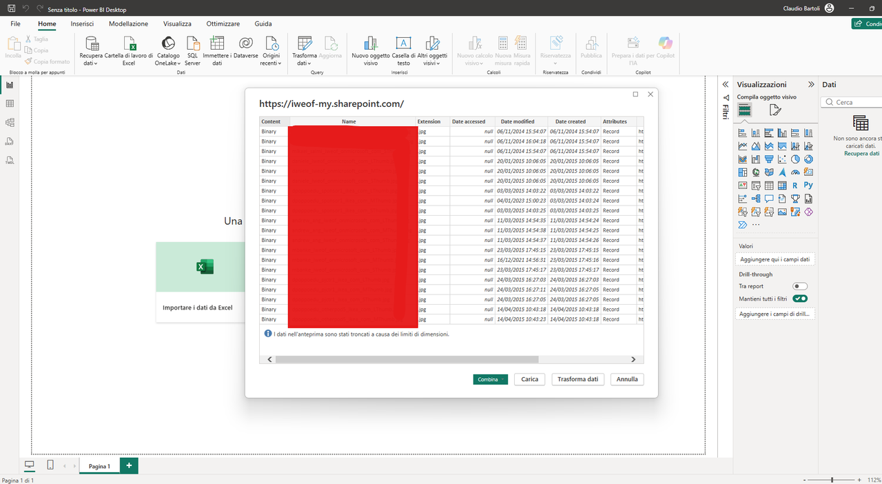 Vorrei che Power BI fosse in grado di caricare automaticamente tutti i file presenti in quella cartella, in modo da poter visualizzare nei report i dati anche in forma accumulata.